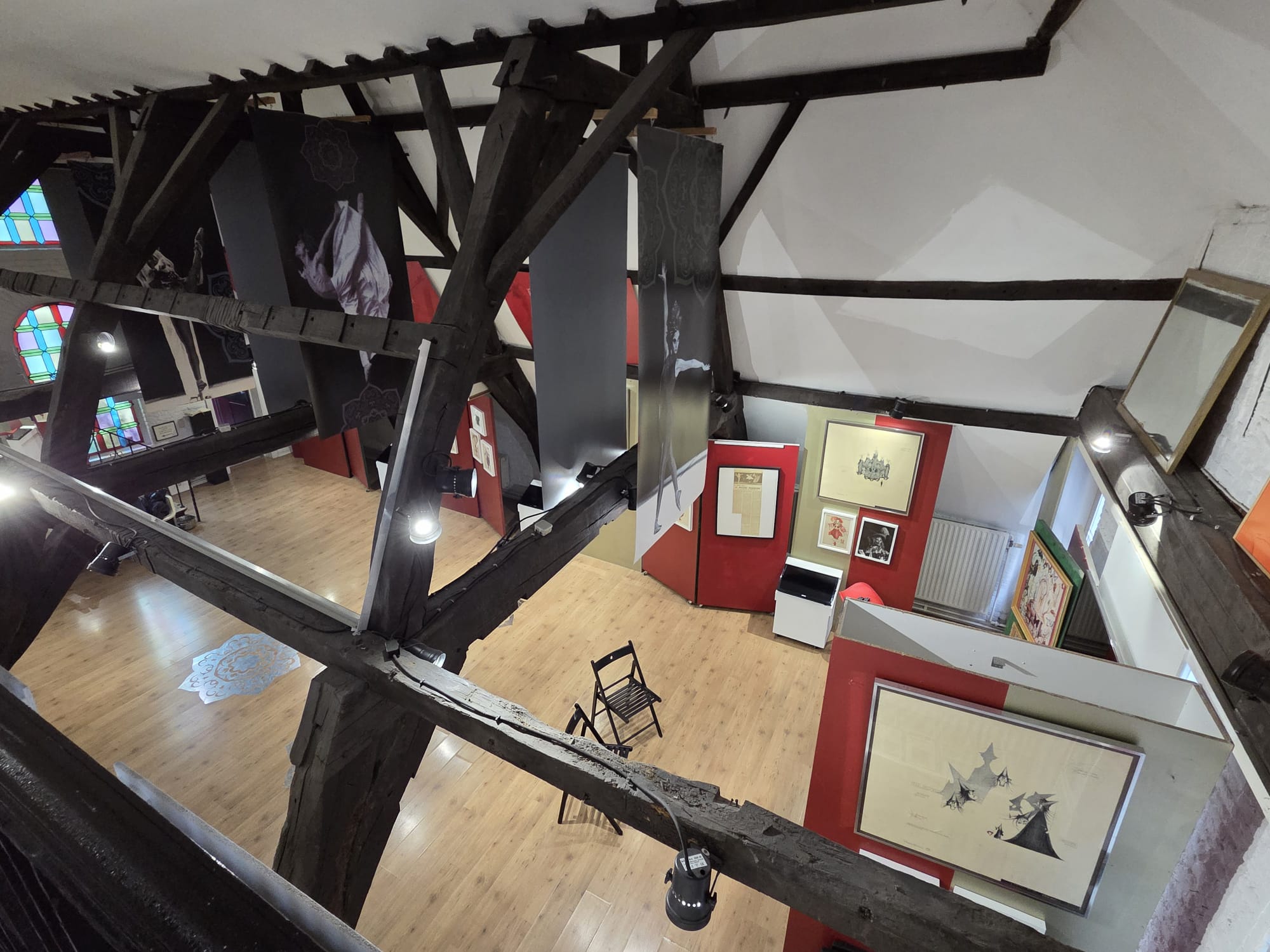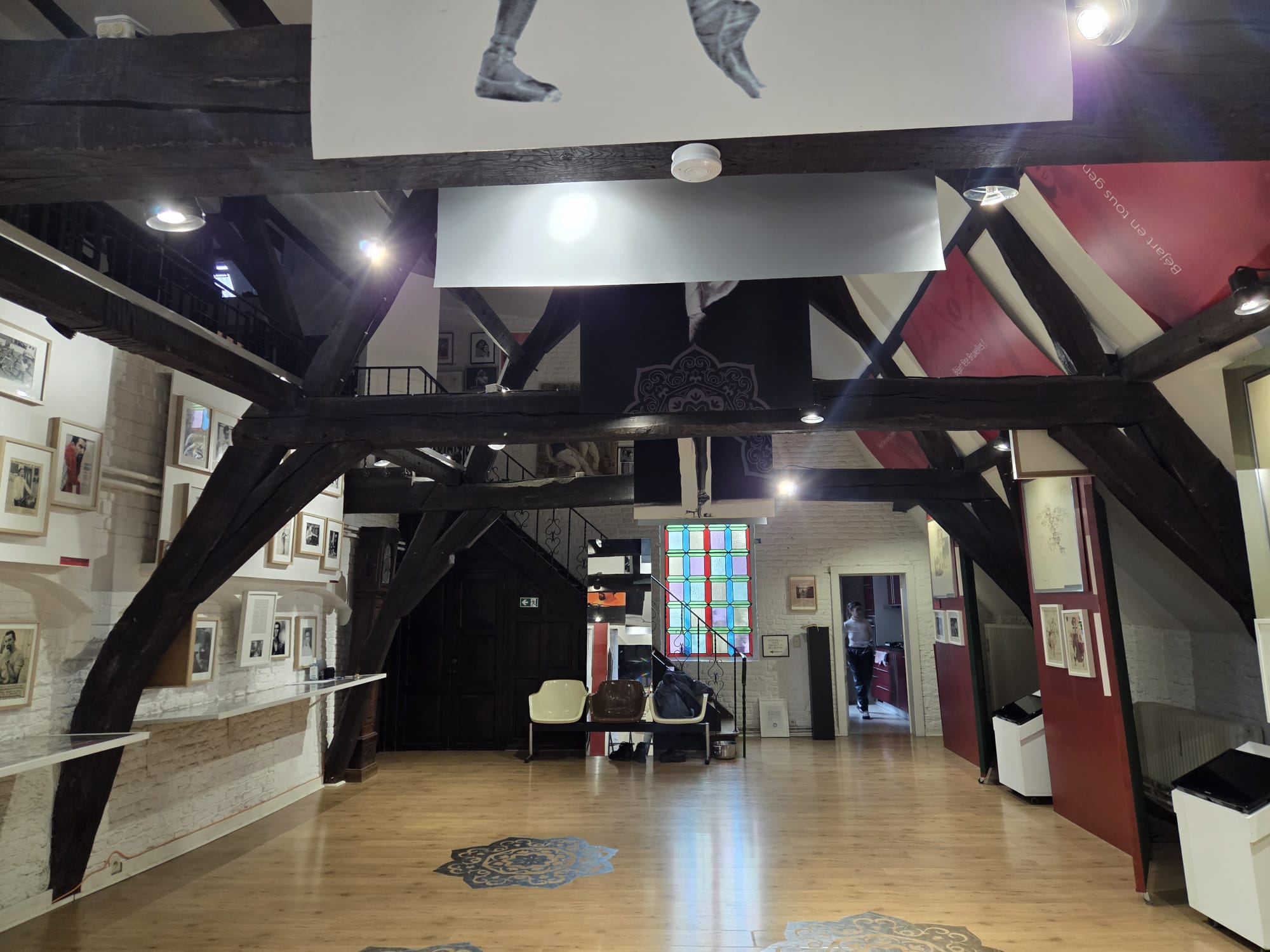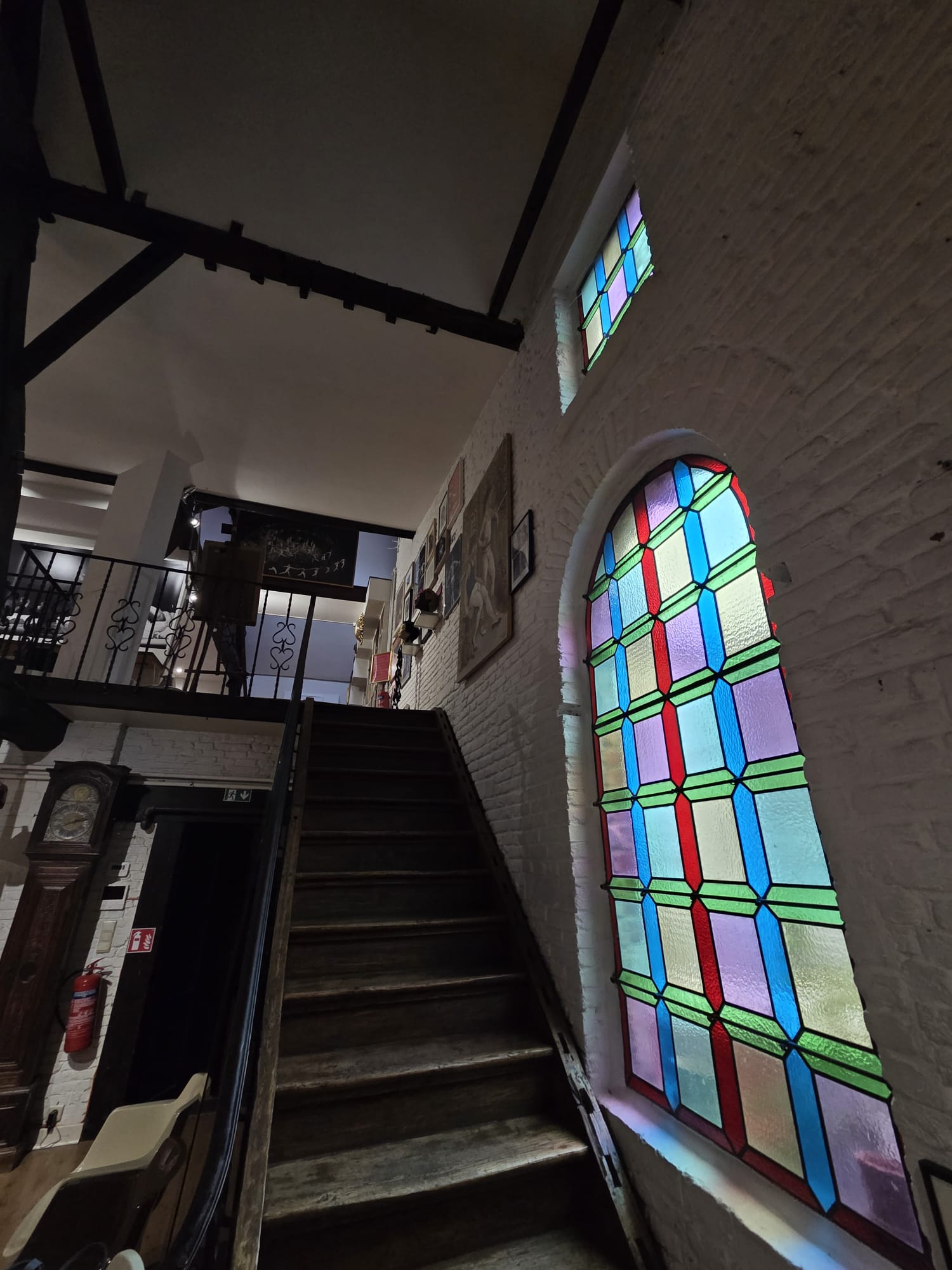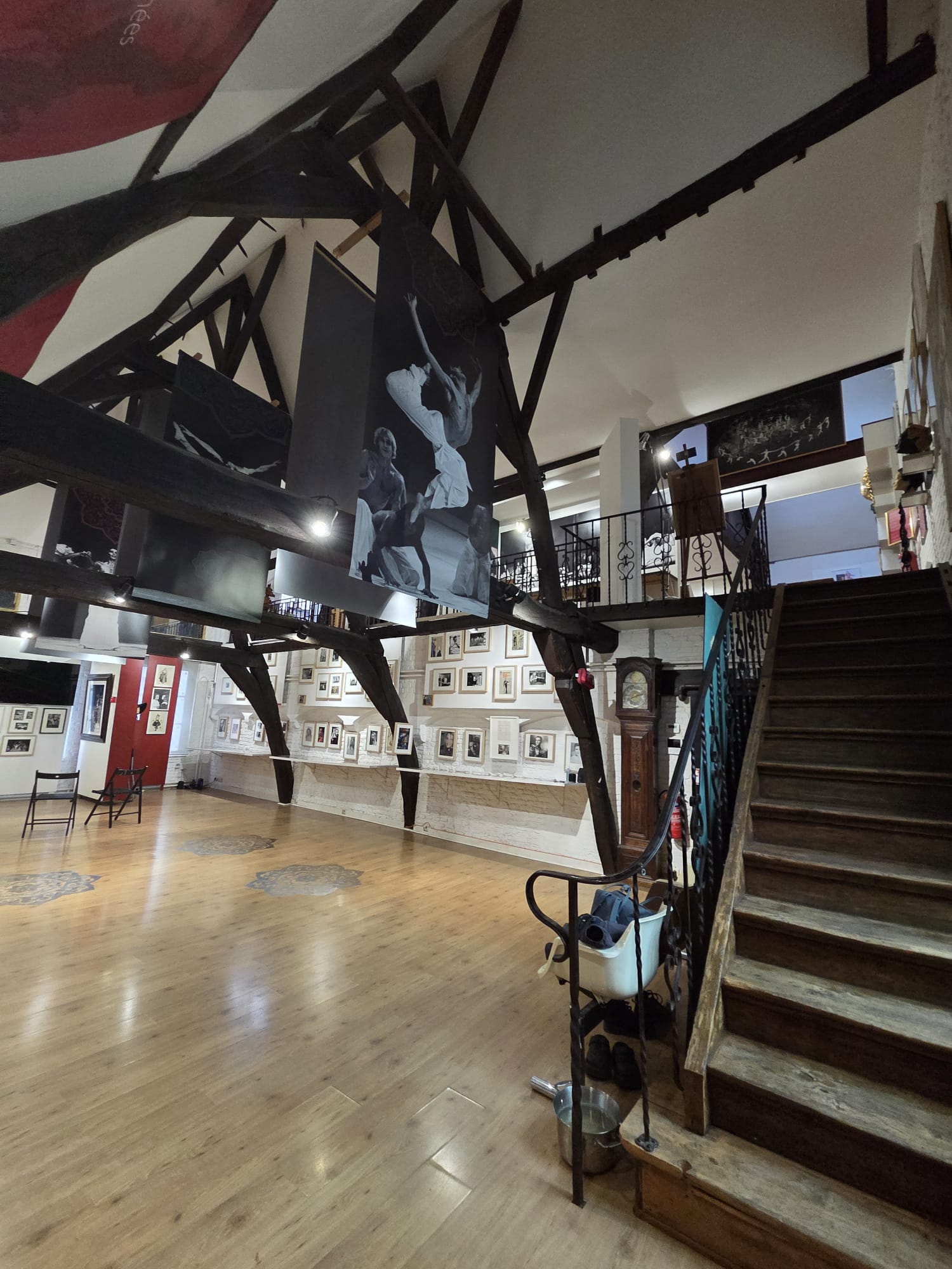 Spacious 18th‑century loft of 300 m² with original exposed beams, located on the top two floors of two merged patrician houses. A beautiful 18th‑century staircase leads up to the loft.