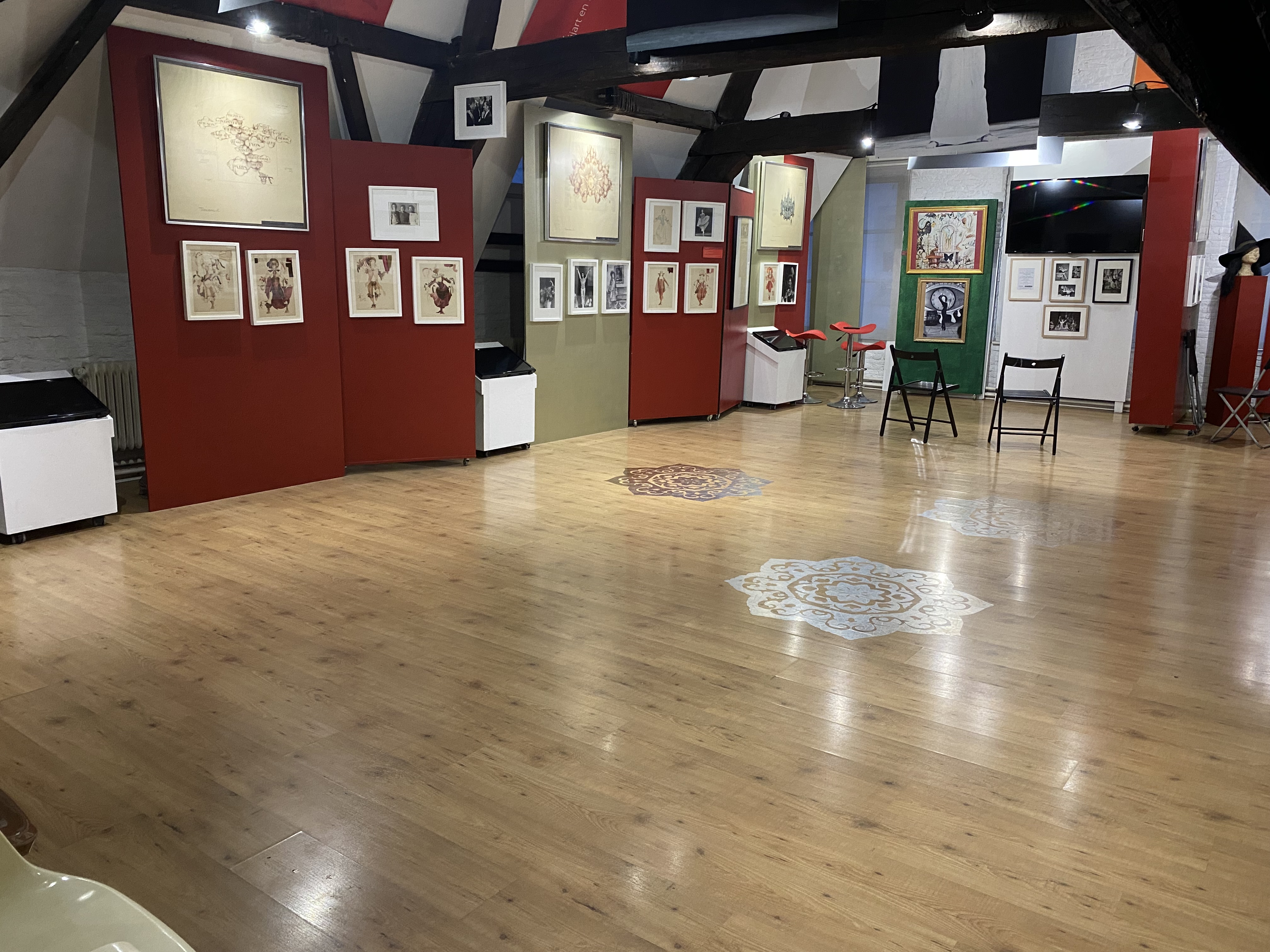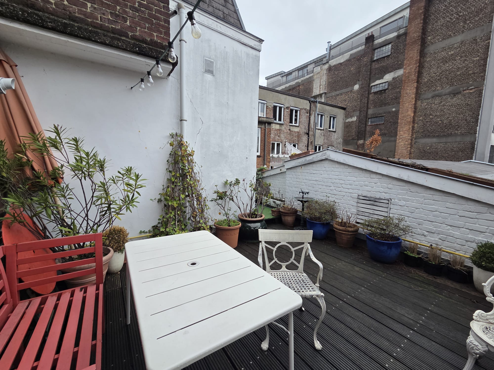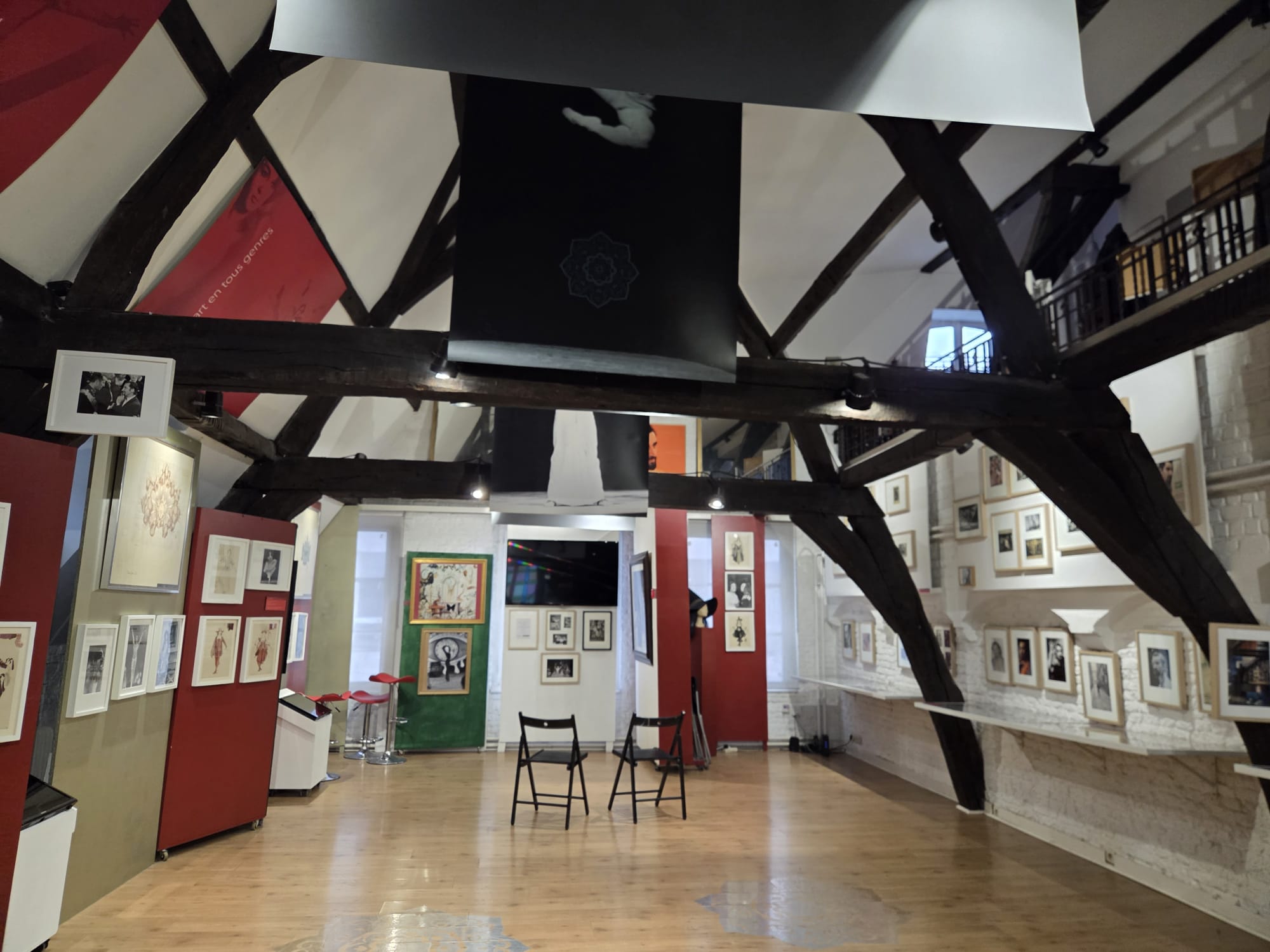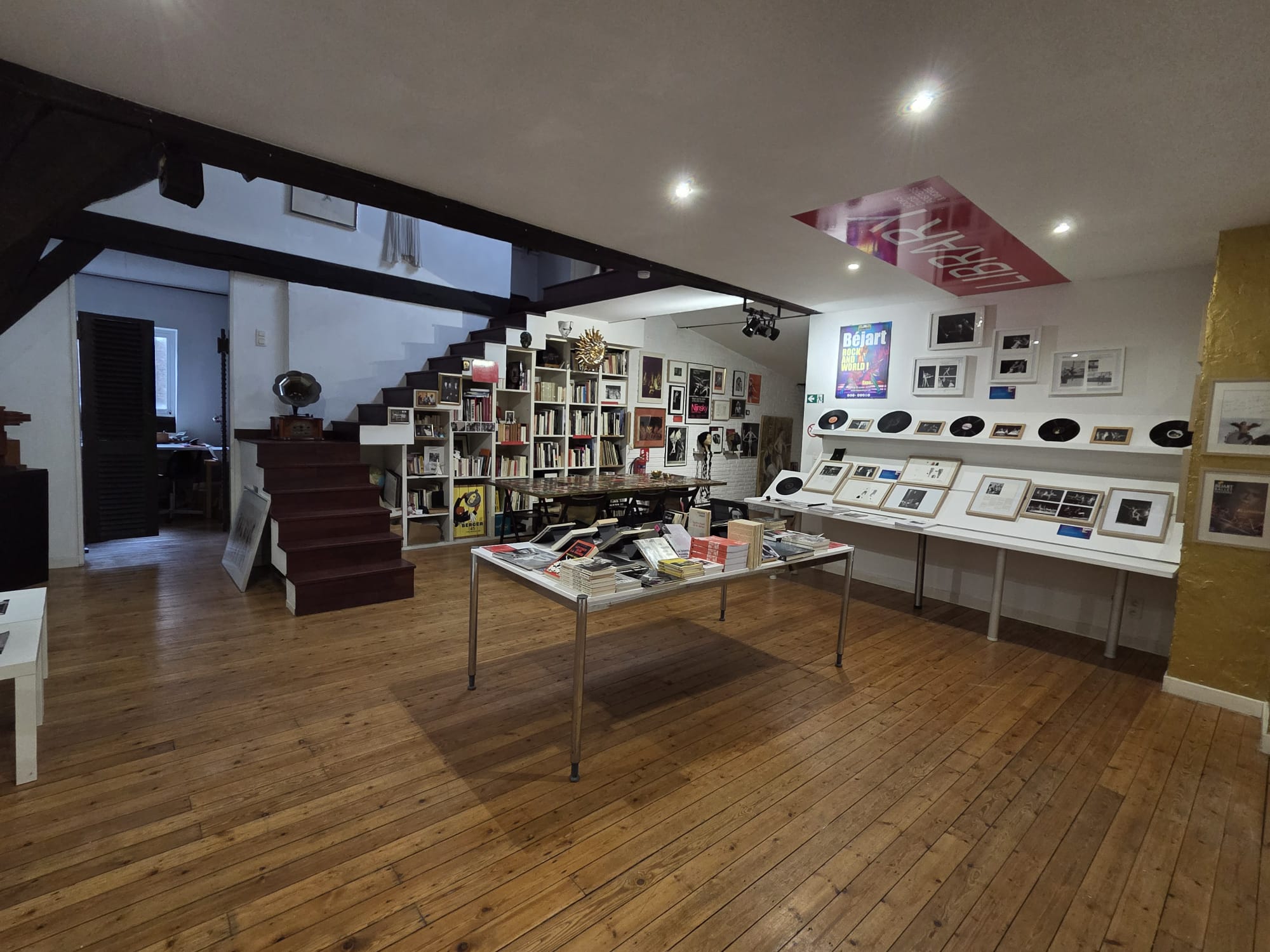 Spacious 18th‑century loft of 300 m² with original exposed beams, located on the top two floors of two merged patrician houses. A beautiful 18th‑century staircase leads up to the loft.